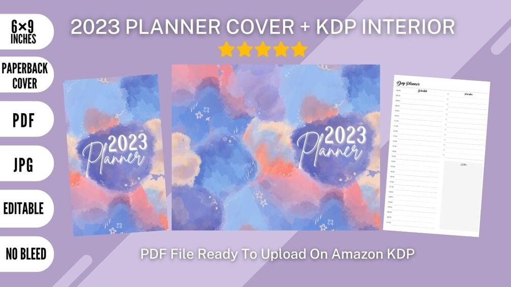 You'll Get 2023 Planner Cover with Canva Link for edit + KDP interior Daily Planner 120 page.