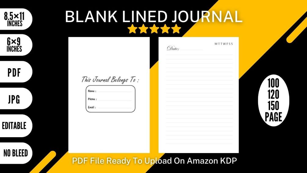 Blank Lined Journal | Paper Lined Journal | Lined Notebook | KDP interior Template