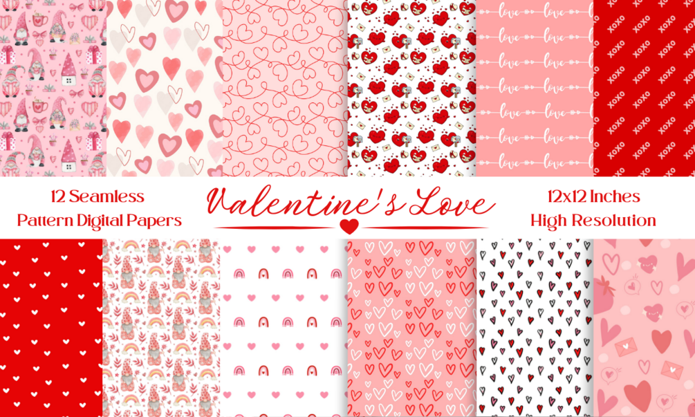 ⭐️ This set includes 10 JPG Digital Papers Printable Bundle For Valentine day Heart Love that you can use in many beautiful projects.